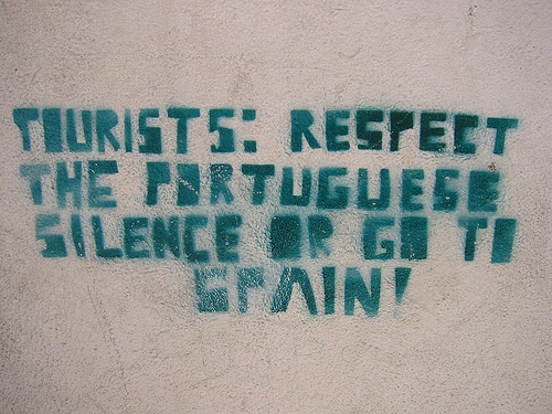 | “Turistas: respeten el silencio portugués o váyanse a España”, del blog Quién da a vez. |