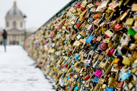 Estas reflexiones me han venido a la cabeza por una noticia (antigua) que leí el otro día sobre varios puentes de la ciudad de Paris que están en grave riesgo de derribarse porque la gente ha puesto ahí candados como símbolo de su amor eterno. La primera vez que fui a París y lo vi me pareció horrible, este verano he conocido Venecia y lo mismo. Esto sí que no puedo entenderlo la verdad ¿un candado? La simbología que entraña lo del candado no me gusta nada (aunque de nuevo, para gustos los colores) pero afear el paisaje de ciudades tan bellas como las mencionadas a golpe de candado me parece próximo al vandalismo.