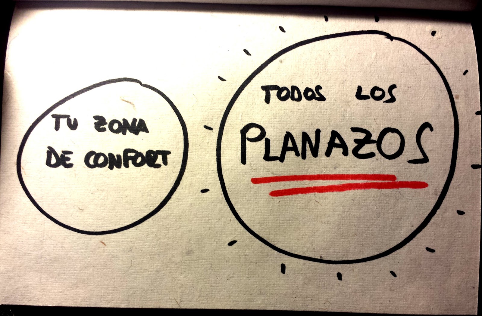Todos tenemos zonas de confort en nuestras vidas, es normal, nos dan estabilidad y la mayor parte del tiempo nos hacen sentir bien. Pueden ir desde las relaciones de pareja hasta las de trabajo, pasando incluso por los amigos y la familia. Muchas veces estas zonas de confort tienen recovecos menos cómodos, en un mundo im-perfecto no podría ser de otra forma. Mientras pesa lo bueno, pues estupendo, buscar la perfección es una tarea muy cansada y casi siempre improductiva. No digo que no haya que intentar superarse cada día, pero la seguridad de contar con elementos que funcionan, al menos para mí, es algo necesario y positivo. El problema es cuando una situación, trabajo, amigos, mujer/marido, etc… deja de tener sentido y por miedo, pereza, falta de autoestima y un montón de auto barreras más, se perpetúan escenarios que más que confort nos dan pesadillas.